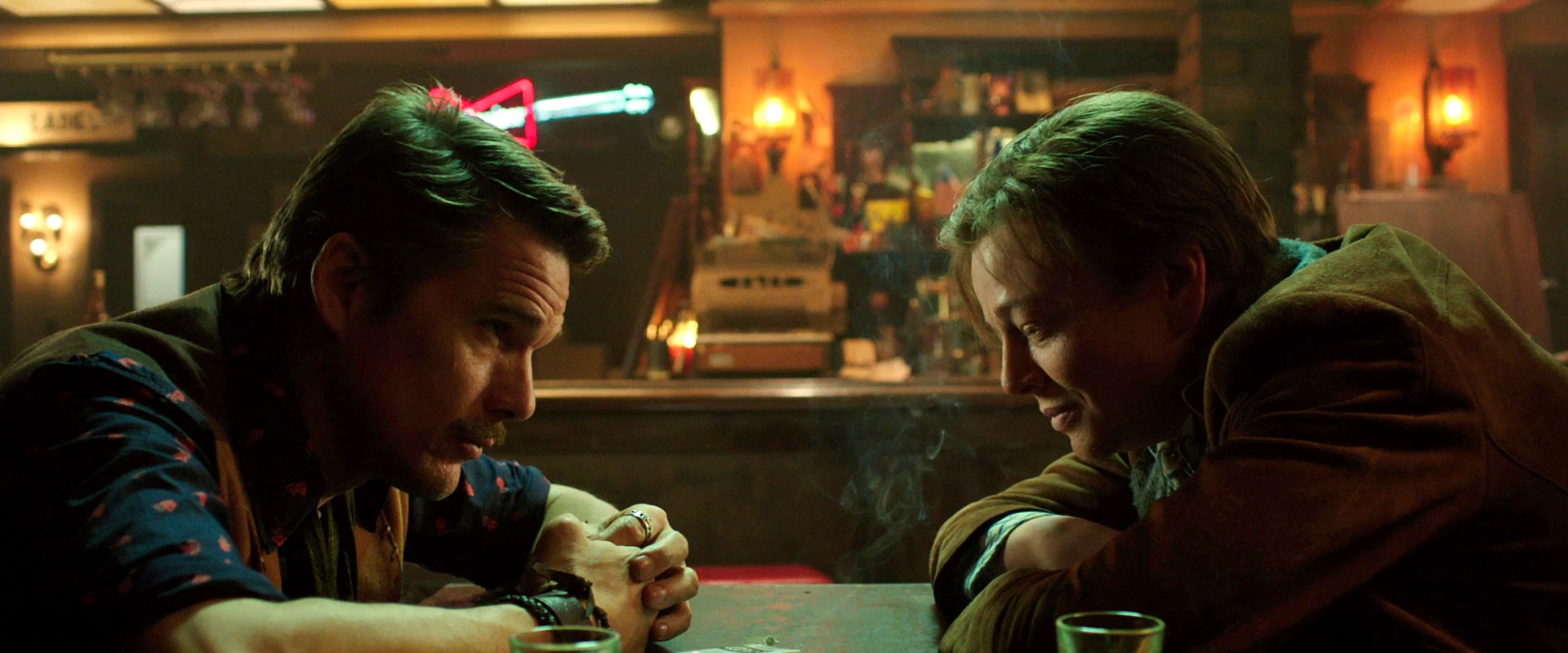 Già per farvi un’idea del livello di Q.I. richiesto per seguire il film e dei momenti di confusione mentale che dovrete vivere, vi basti sapere che c’è di mezzo Ethan Hawke (Gattaca vi dice nulla?). E tutti sappiamo che quando il Sig. Hawke è coinvolto, il film non è mai banale. Me lo immagino a sogghignare diabolicamente mentre sceglie il film più complesso tra quelli che gli sono proposti, pensando già a quanti mal di testa farà venire agli spettatori.