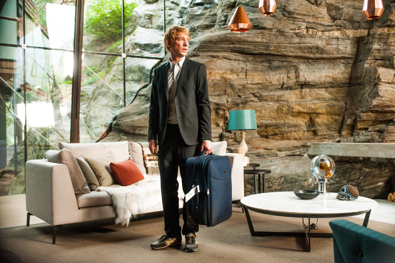 Che non è una persona qualunque. Ma il fondatore di Blue Book, una Google ante litteram, per intenderci, opera magna di questo incredibile “Mozart dell’informatica”. Costui è interpretato da un Oscar Isaac davvero superlativo che già con la mera presenza ci turba dato che non riusciamo a stabilire se sia un burbero genio, un sadico alcolizzato o un creatore pianificatore.